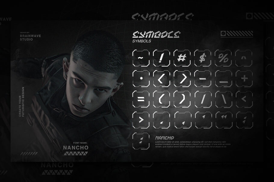 NANCHO is a bolt italic font with a cyberpunk, futuristic vibe. Its design combines dynamic and sharp elements, creating a sense of speed and technology. Perfect for designs that require a modern, innovative, and bold look.